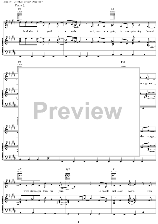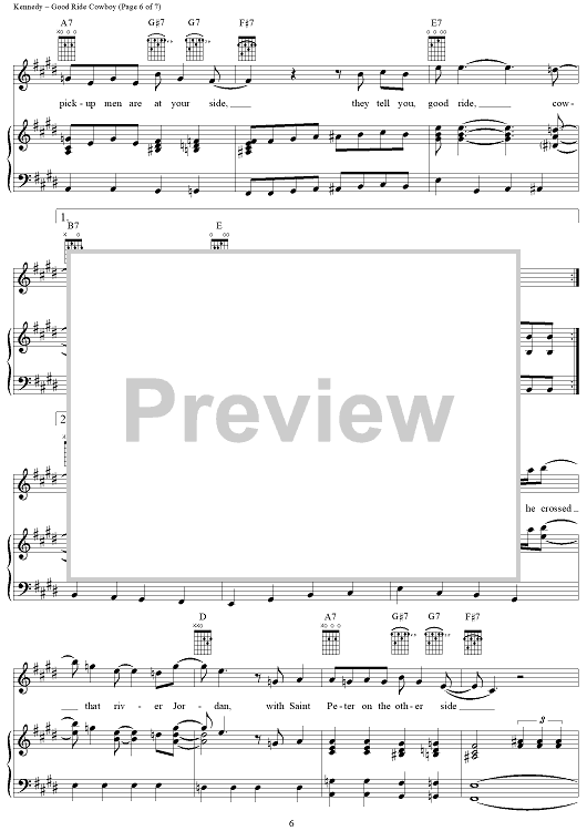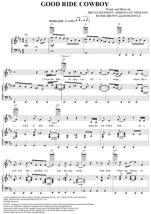Digital Sheet Music for Good Ride Cowboy by Garth Brooks, Bryan Kennedy, Jerrod Lee Niemann, Richie Brown, Bob Doyle scored for Piano/Vocal/Chords; id:316416