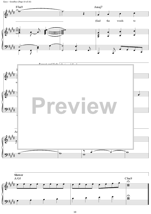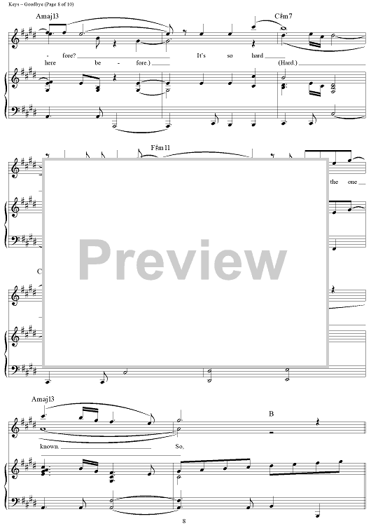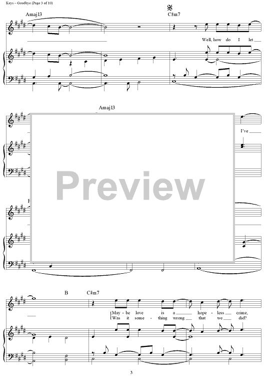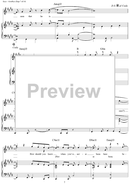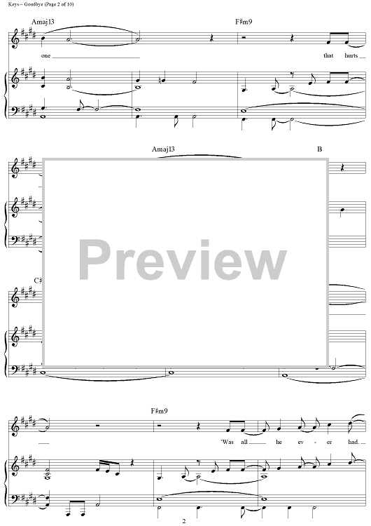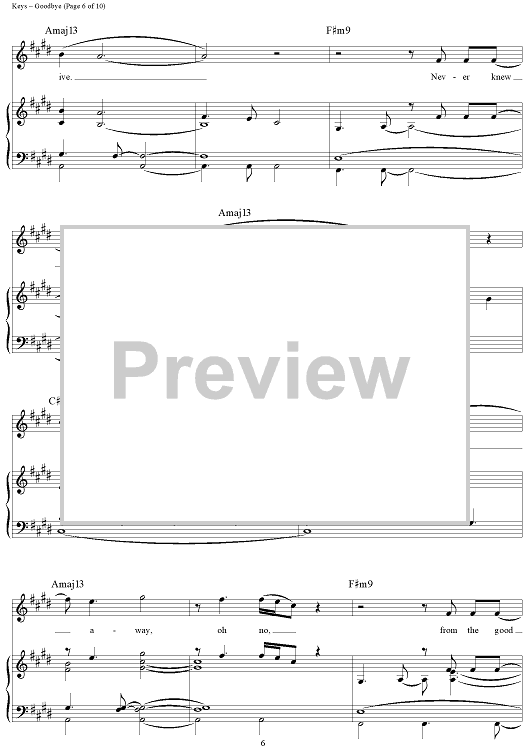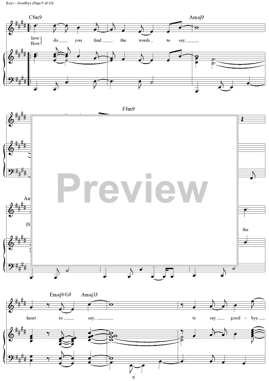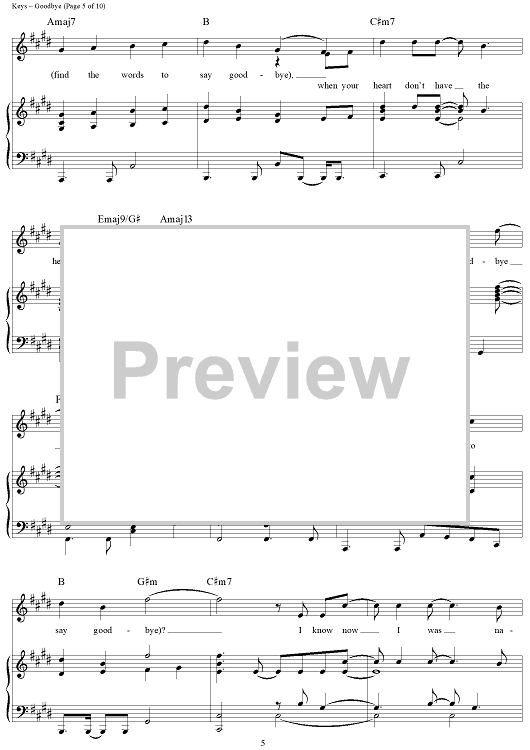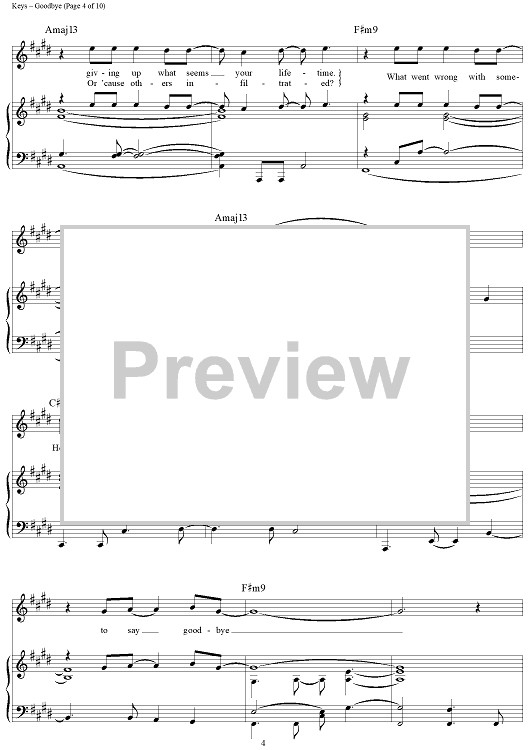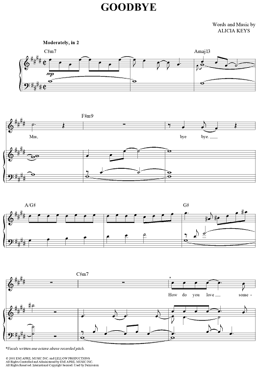 Digital Sheet Music for Goodbye by Alicia Keys scored for Piano/Vocal/Chords; id:362936