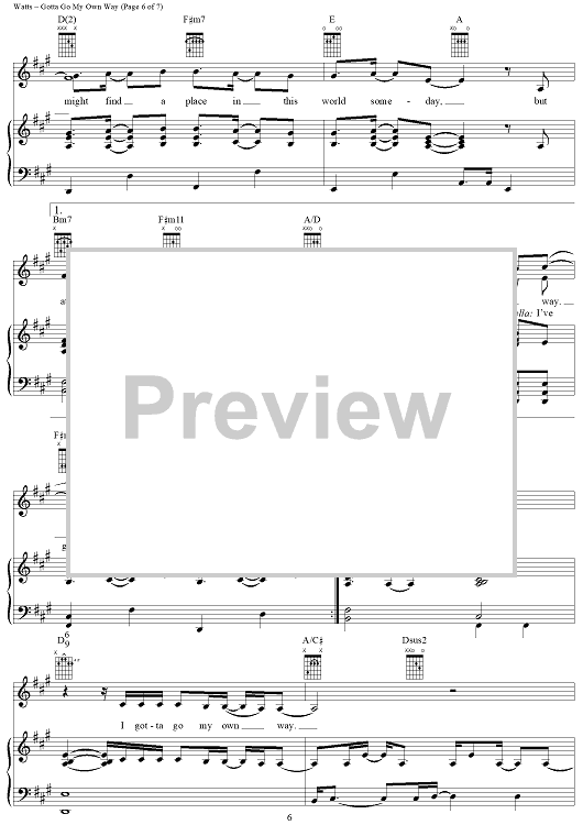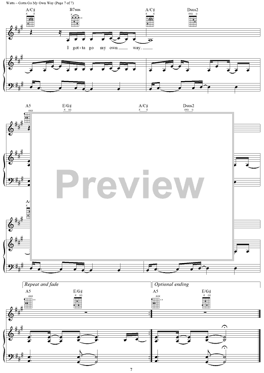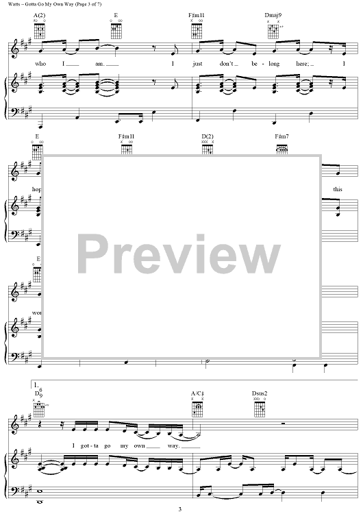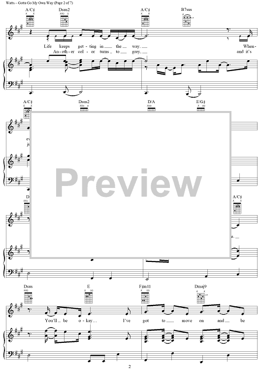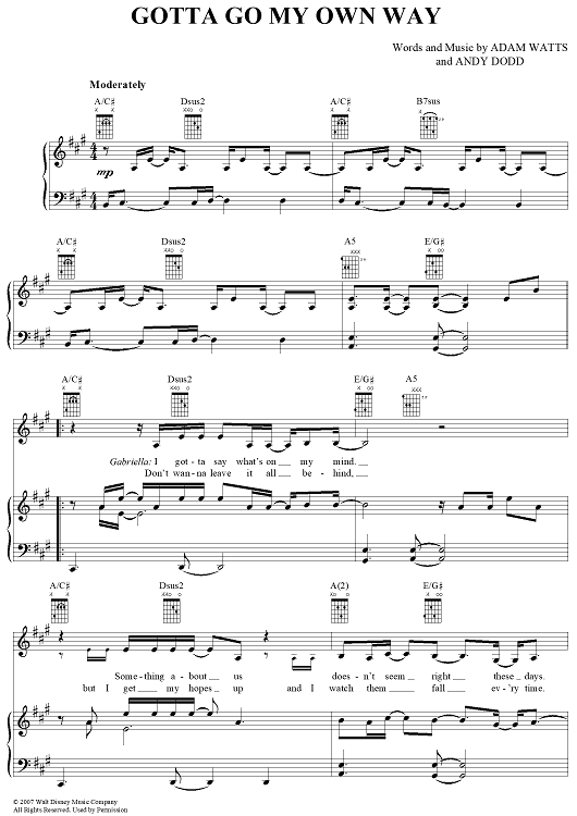 Digital Sheet Music for Gotta Go My Own Way by Adam Watts, Andy Dodd scored for Piano/Vocal/Chords; id:366857