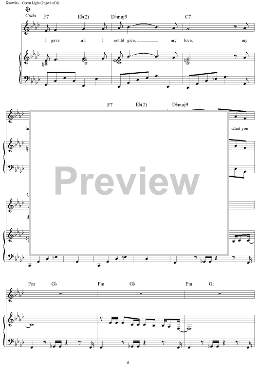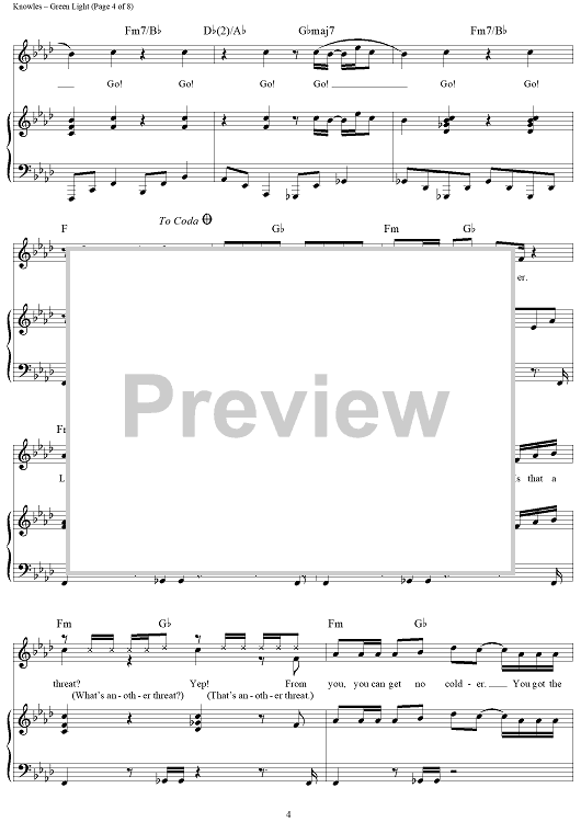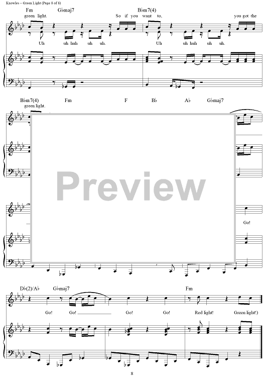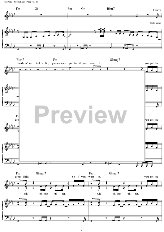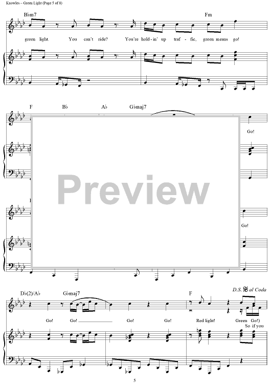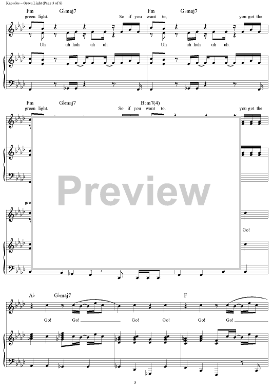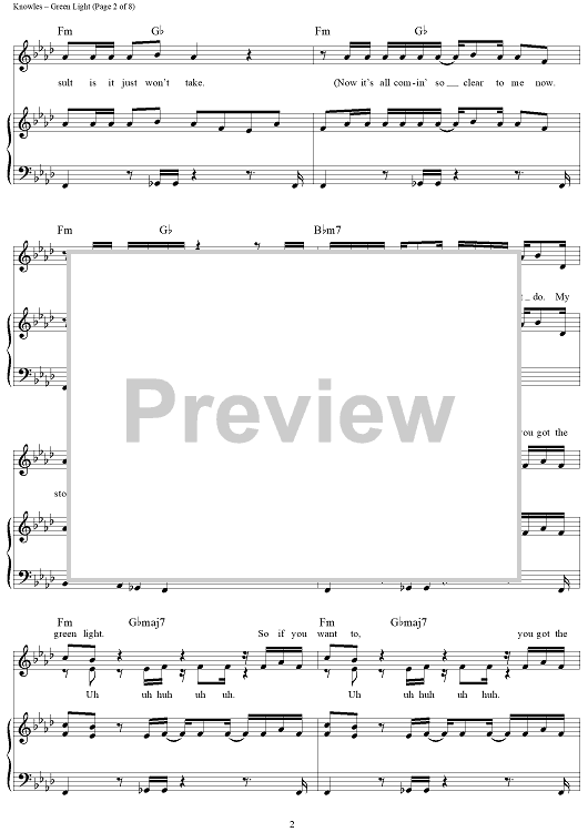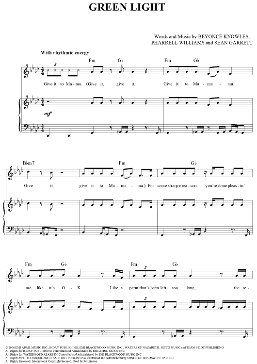 Digital Sheet Music for Green Light by Beyonce, Pharrell Williams, Sean Garrett scored for Piano/Vocal/Chords; id:366090