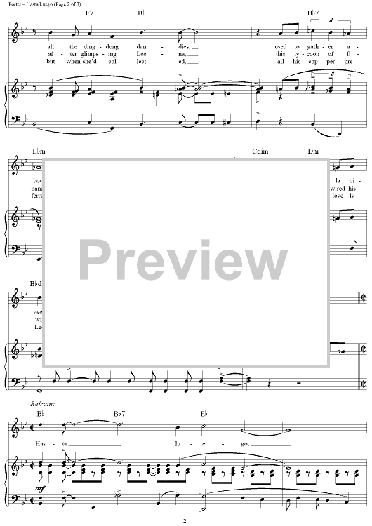 Digital Sheet Music for Hasta Luego by Cole Porter scored for Piano/Vocal/Chords; id:320864