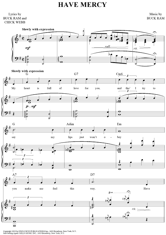 Digital Sheet Music for Have Mercy by Chick Webb, Buck Ram scored for Piano/Vocal/Ukulele; id:423422