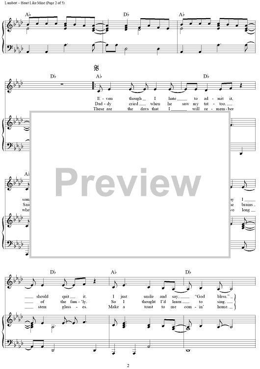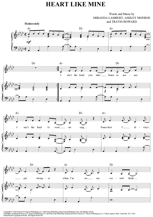Digital Sheet Music for Heart Like Mine by Travis Howard, Miranda Lambert, Ashley Monroe scored for Piano/Vocal/Chords; id:428748