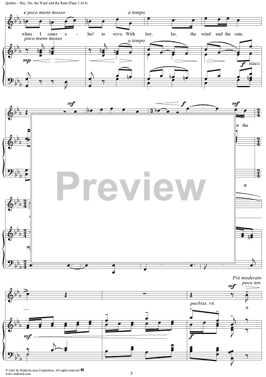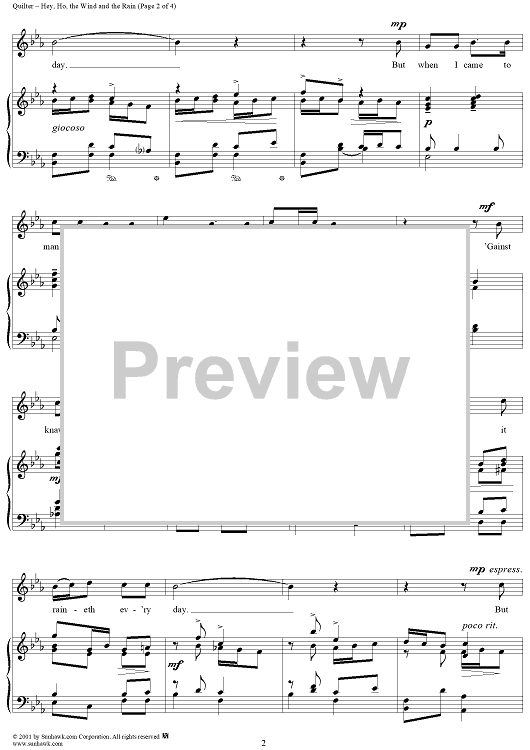 Digital Sheet Music for Hey, Ho, The Wind and the Rain, Op. 23, No. 5 by Roger Quilter, William Shakespeare scored for Voice/Piano; id:254996