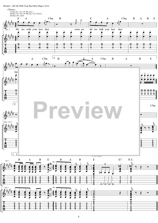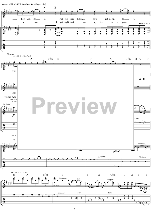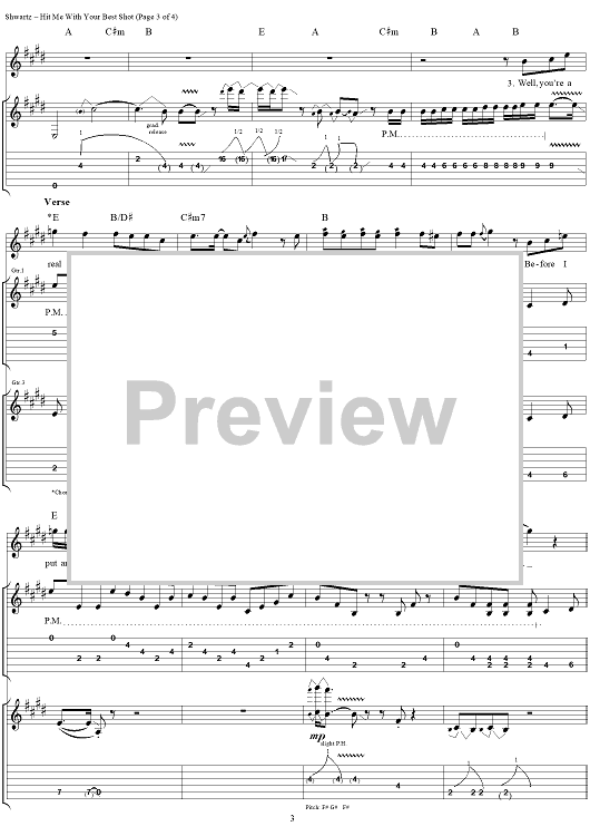 Digital Sheet Music for Hit Me with Your Best Shot by Pat Benatar, Eddie Schwartz scored for Guitar Tab/Vocal/Chords; id:404491