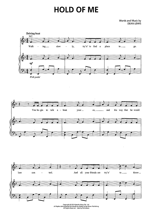 Digital Sheet Music for Hold Of Me by Dean Lewis scored for Piano/Vocal/Chords; id:467836