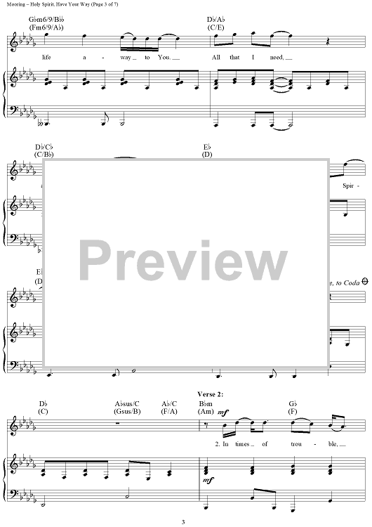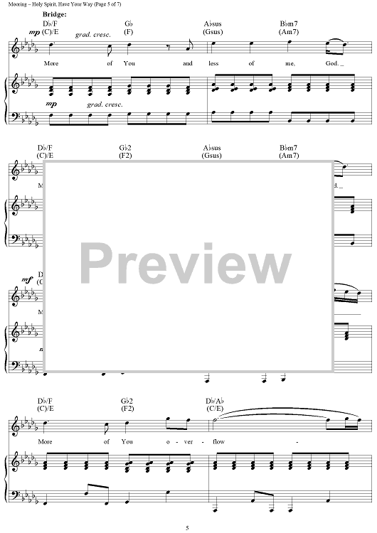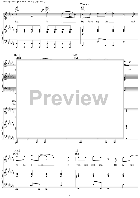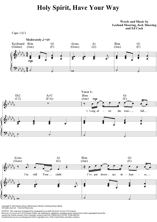 Digital Sheet Music for Holy Spirit, Have Your Way by Leeland Mooring, Jack Mooring scored for Piano/Vocal/Chords; id:406660