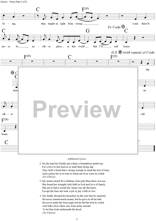 Digital Sheet Music for Home by Al Jackson Jr scored for Lead Sheet; id:119916