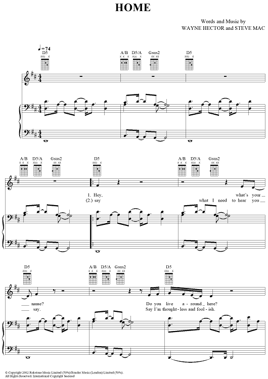 Digital Sheet Music for Home by Westlife, Steve Mac, Wayne Hector scored for Piano/Vocal/Chords; id:366900