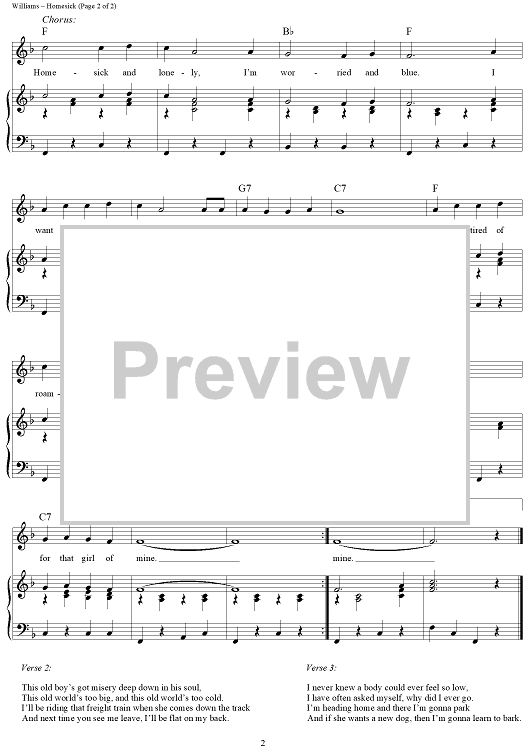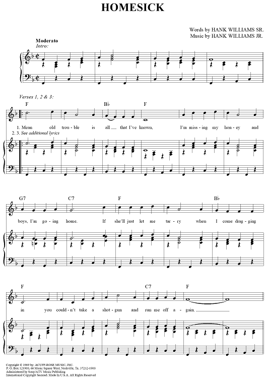 Digital Sheet Music for Homesick by Hank Williams, Hank Williams, Jr. scored for Piano/Vocal/Chords; id:363745