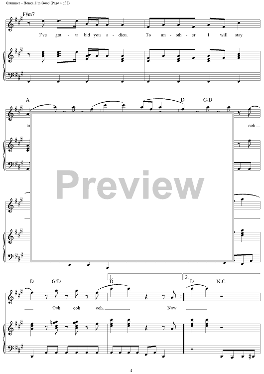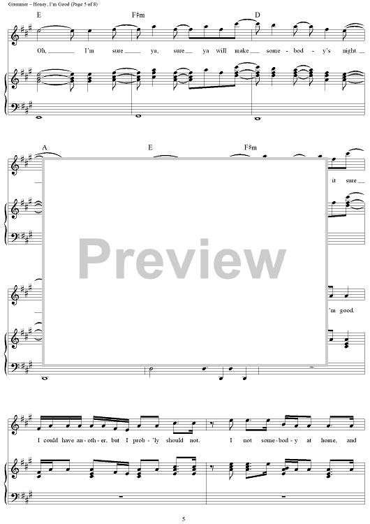 Digital Sheet Music for Honey, I'm Good by Andy Grammer, Nolan Sipe scored for Piano/Vocal/Chords; id:451805
