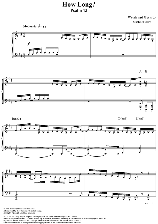 Digital Sheet Music for How Long? by Michael Card scored for Piano/Vocal/Chords; id:115993