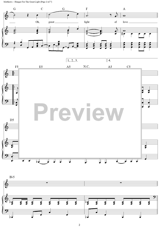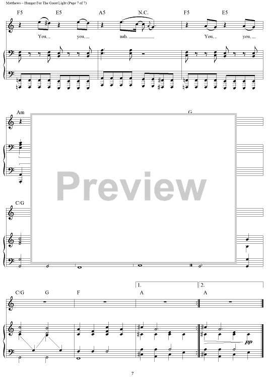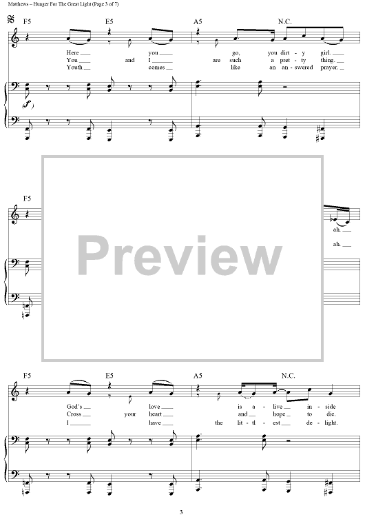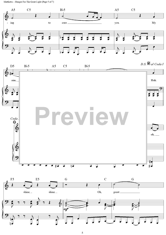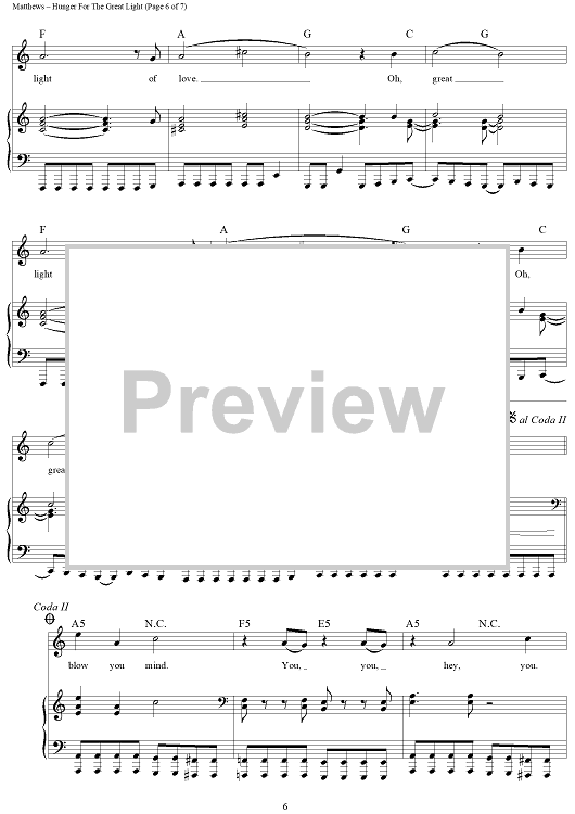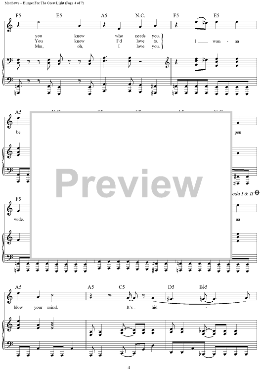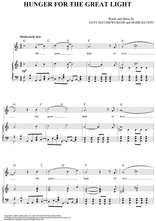 Digital Sheet Music for Hunger for the Great Light by Dave Matthews Band, Mark Batson scored for Piano/Vocal/Chords; id:454302