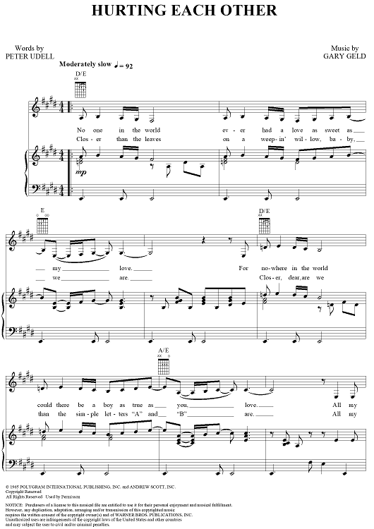 Digital Sheet Music for Hurting Each Other by The Carpenters, Gary Geld, Peter Udell scored for Piano/Vocal/Chords; id:114135