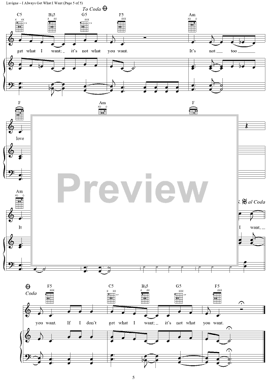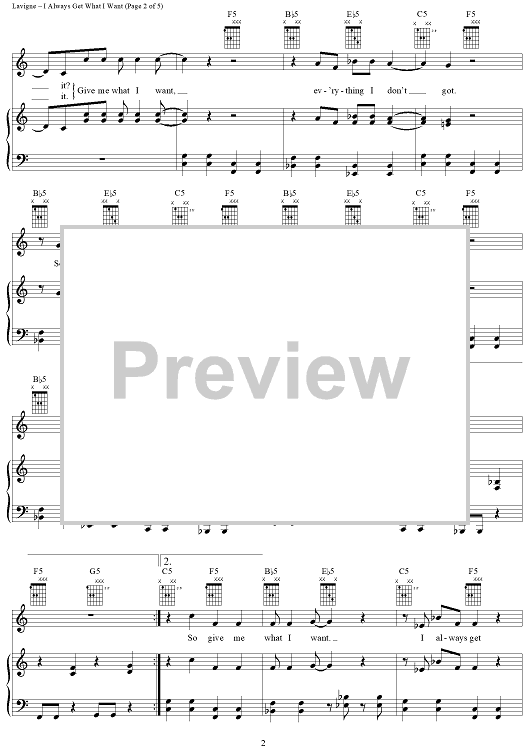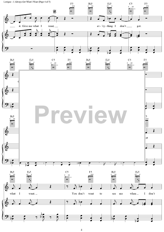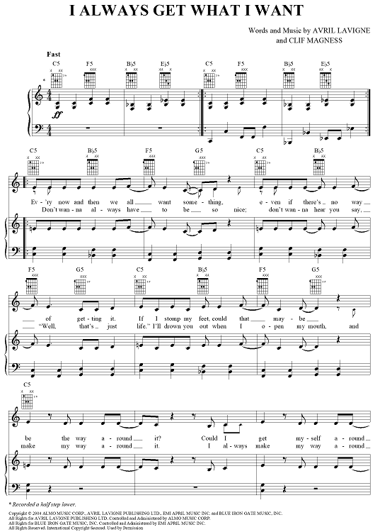 "I Always Get What I Want" Sheet Music by Avril Lavigne