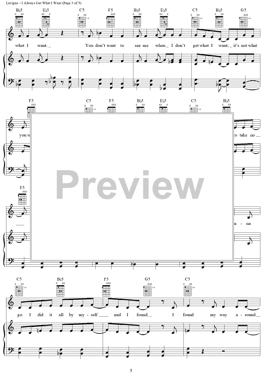 Digital Sheet Music for I Always Get What I Want by Clif Magness, Avril Lavigne scored for Piano/Vocal/Chords; id:402938
