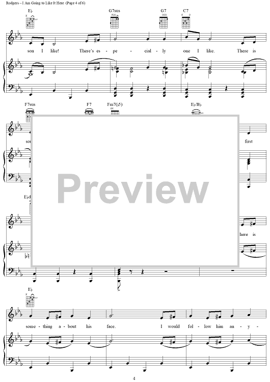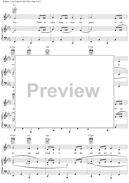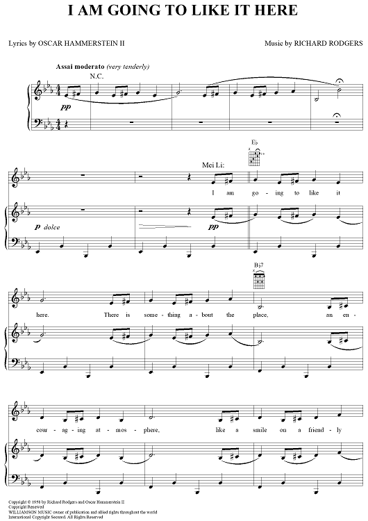 Digital Sheet Music for I Am Going to Like It Here by Richard Rodgers, Oscar Hammerstein II scored for Piano/Vocal/Chords; id:367056