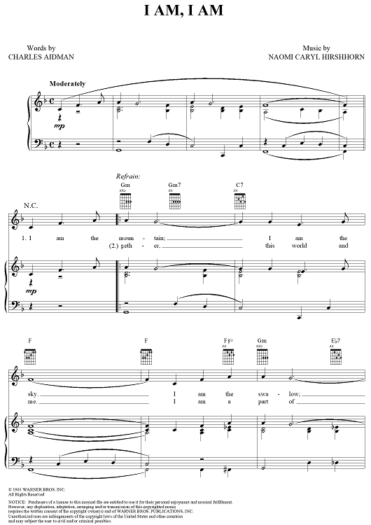 Digital Sheet Music for I Am, I Am by Charles Aidman, Naomi Caryl Hirshhorn scored for Piano/Vocal/Chords; id:355712