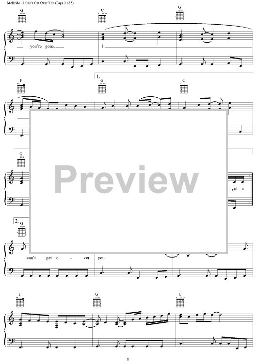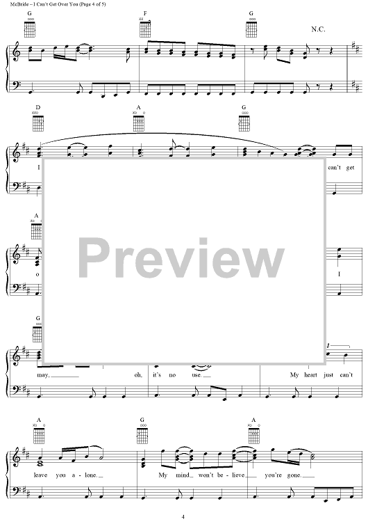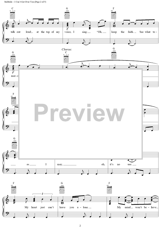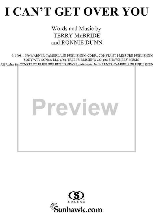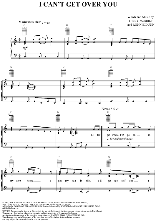 Digital Sheet Music for I Can't Get Over You by Terry McBride, Ronnie Dunn, Brooks & Dunn scored for Piano/Vocal/Chords; id:114050