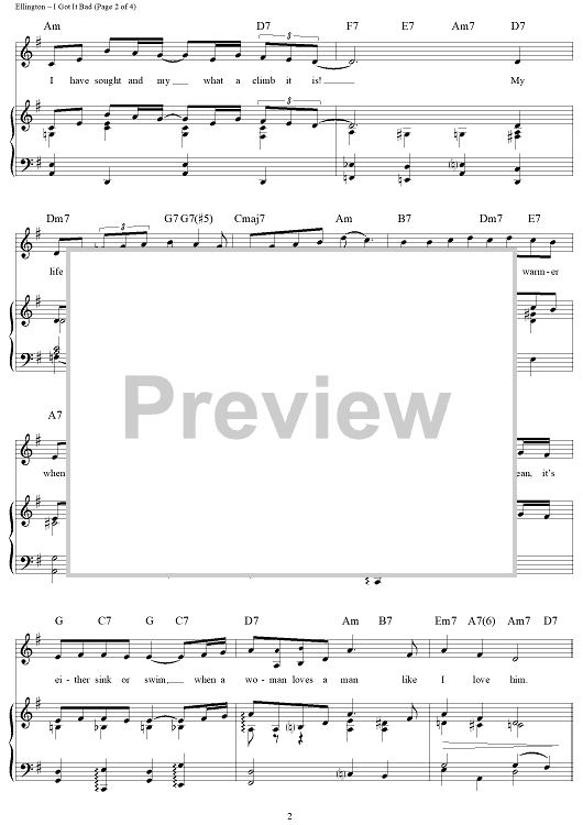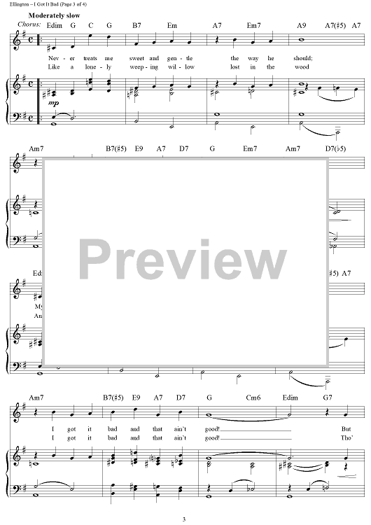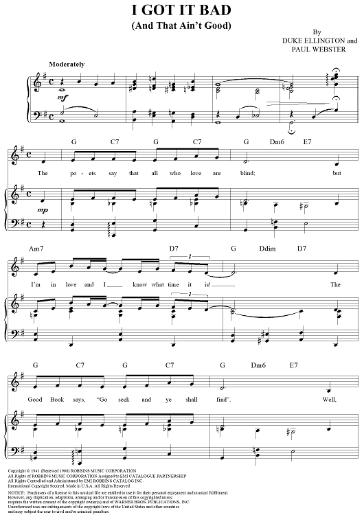 Digital Sheet Music for I Got It Bad (And That Ain't Good) by Duke Ellington, Paul Francis Webster, Benny Goodman scored for Piano/Vocal/Chords; id:116301
