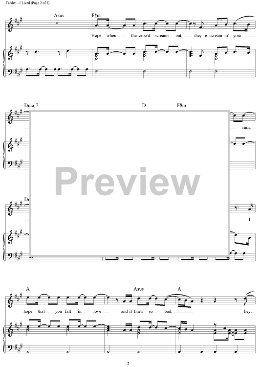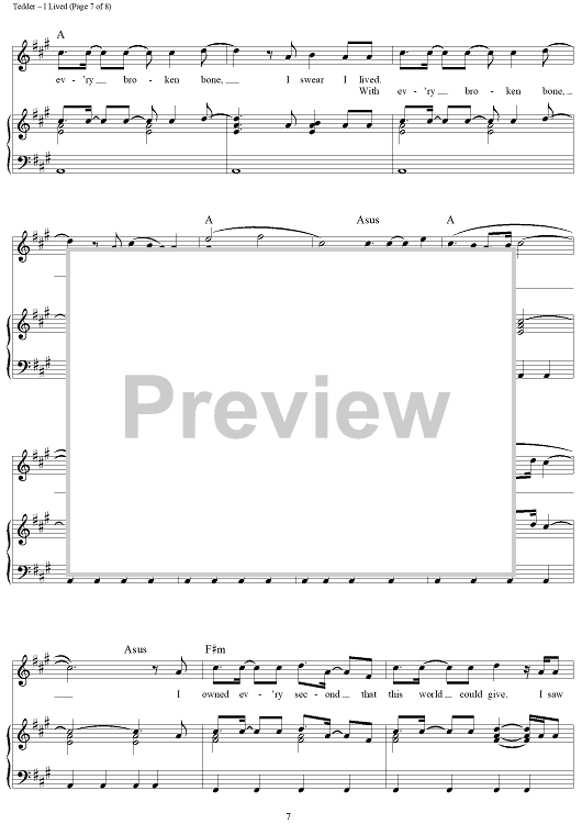 Digital Sheet Music for I Lived by Ryan Tedder, OneRepublic, Noel Zancanella scored for Piano/Vocal/Chords; id:450165