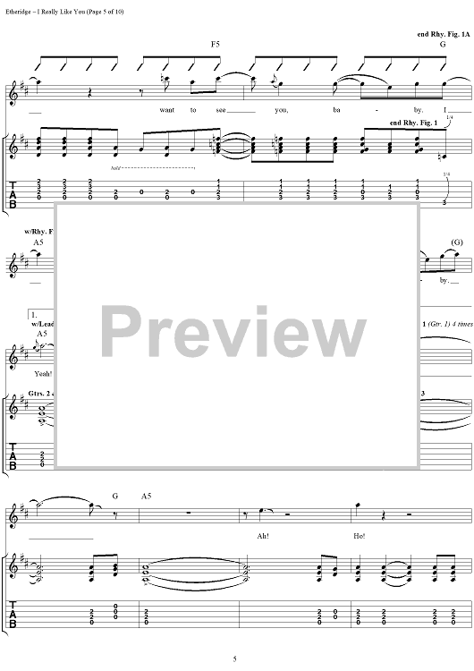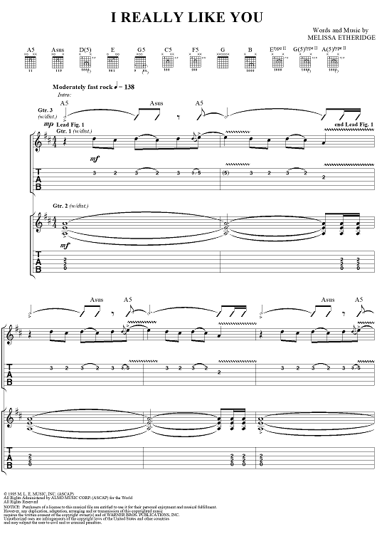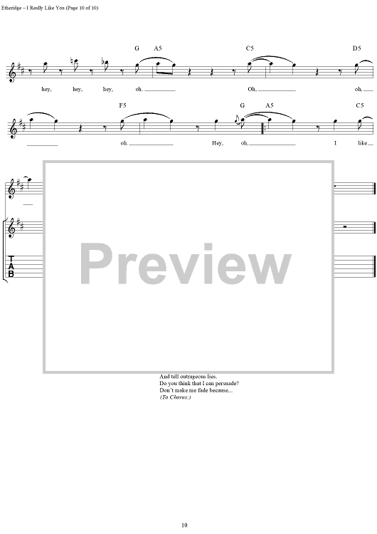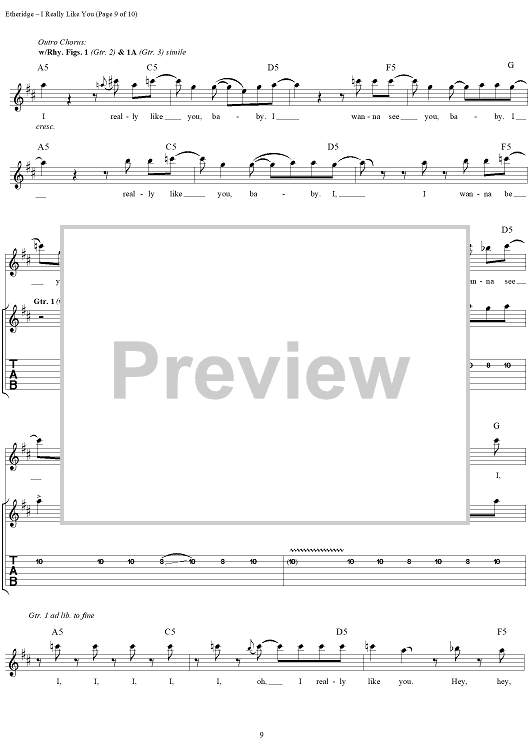 "I Really Like You" Sheet Music by Melissa Etheridge