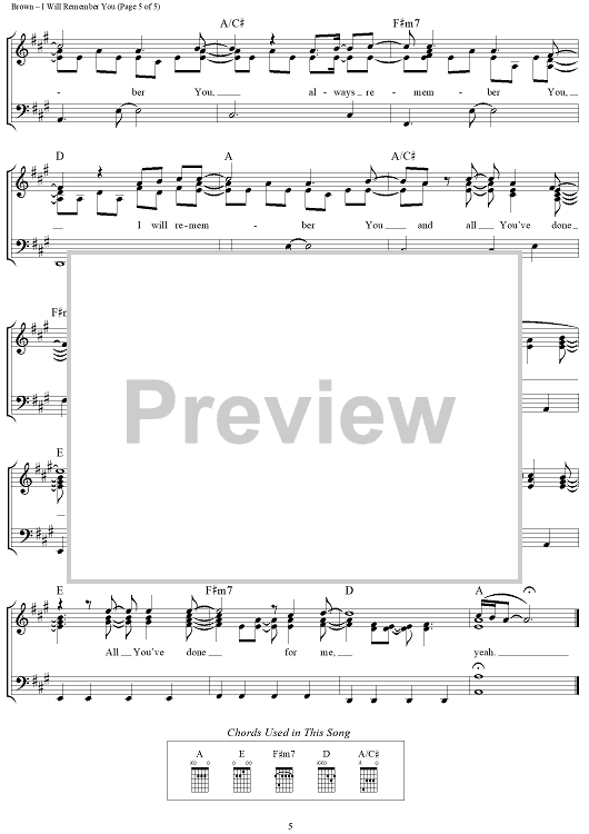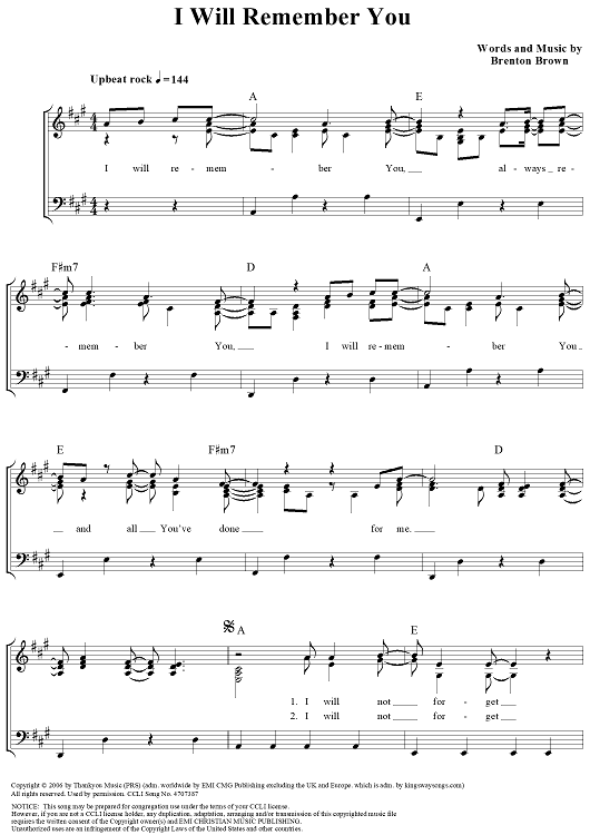 Digital Sheet Music for I Will Remember You by Brenton Brown scored for Piano/Vocal/Chords; id:360933