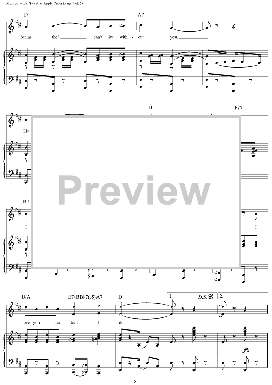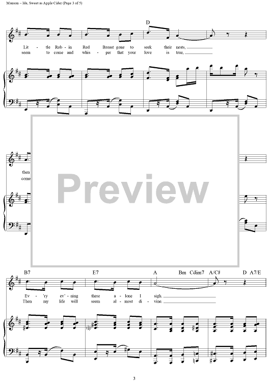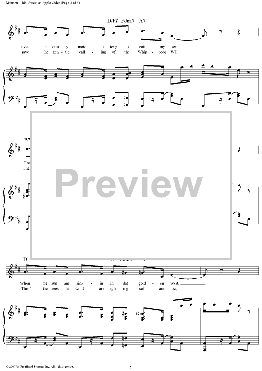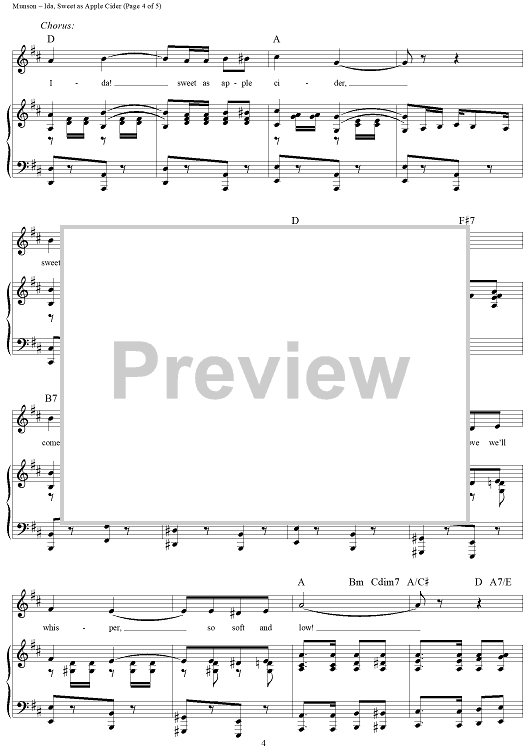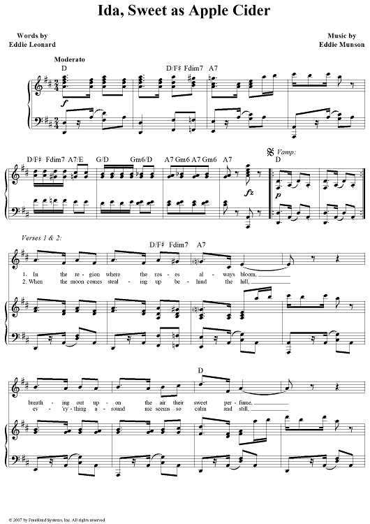 Digital Sheet Music for Ida, Sweet As Apple Cider by Eddie Leonard, Eddie Munson scored for Piano/Vocal/Chords; id:360631