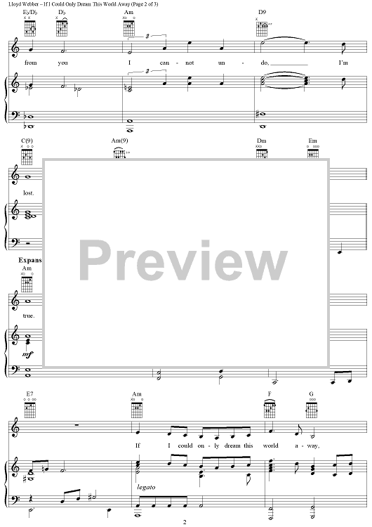 "If I Could Only Dream This World Away" Sheet Music by Andrew Lloyd Webber