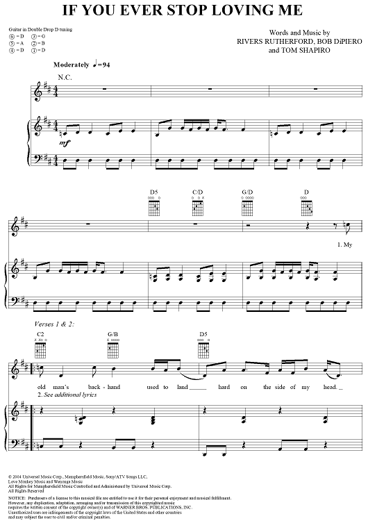Digital Sheet Music for If You Ever Stop Loving Me by Bob DiPiero, Rivers Rutherford, Tom Shapiro, Montgomery Gentry scored for Piano/Vocal/Chords; id:310774