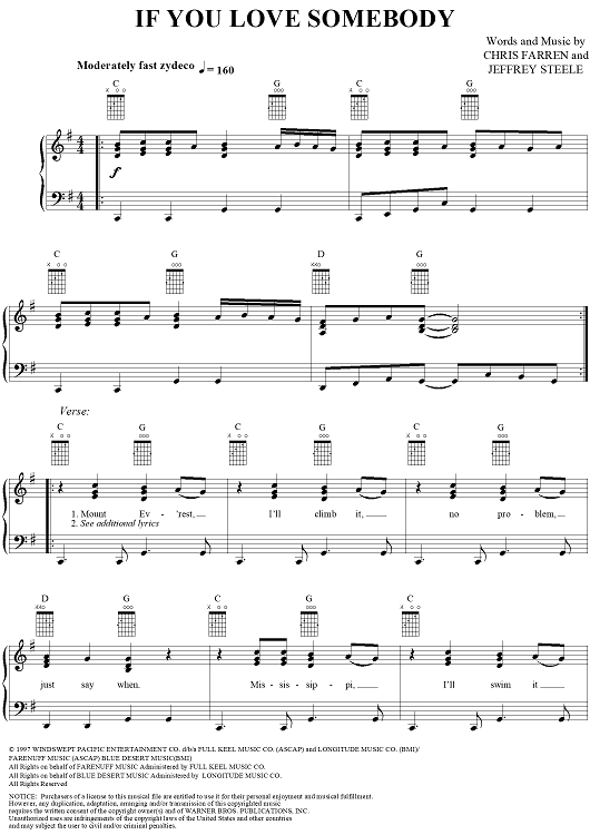 Digital Sheet Music for If You Love Somebody by Kevin Sharp, Jeffrey Steele, Chris Farren scored for Piano/Vocal/Chords; id:114027