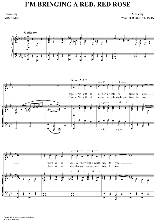 Digital Sheet Music for I'm Bringing a Red, Red Rose by Gus Kahn, Eddie Cantor, Walter Donaldson, Nina Simone scored for Piano/Vocal; id:355891