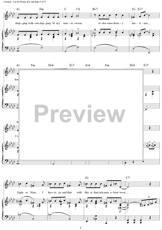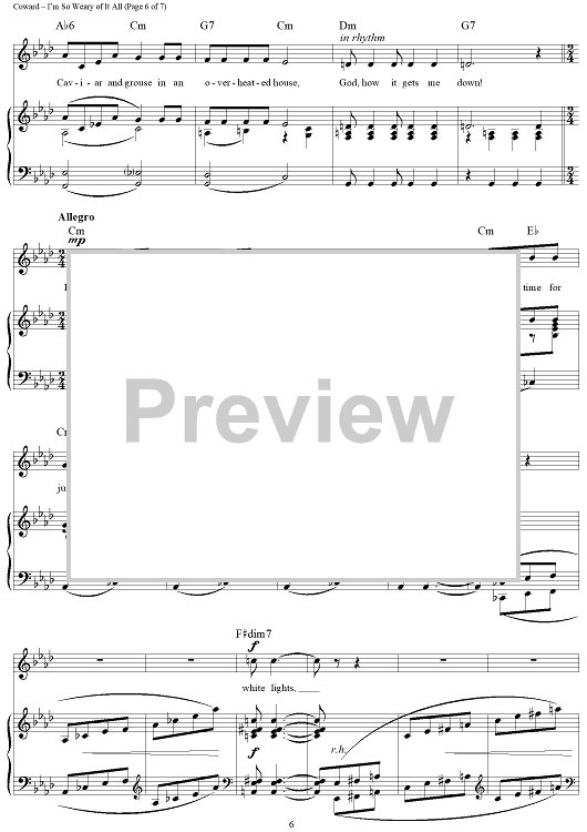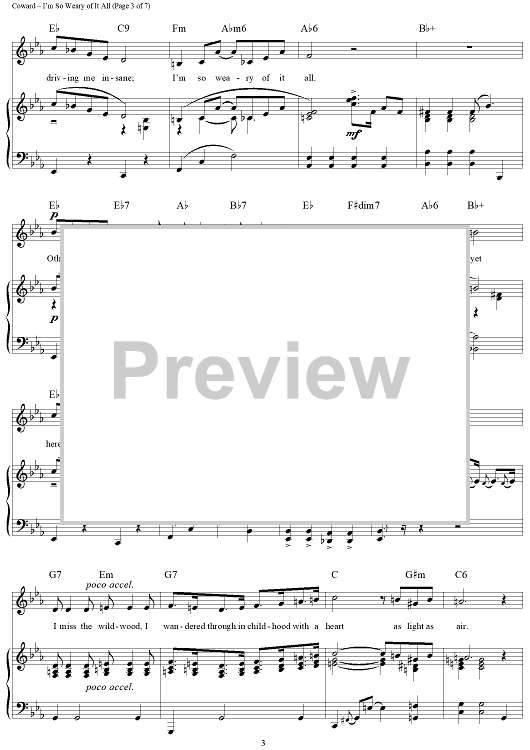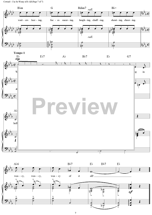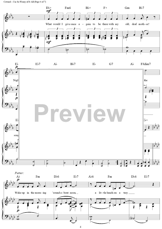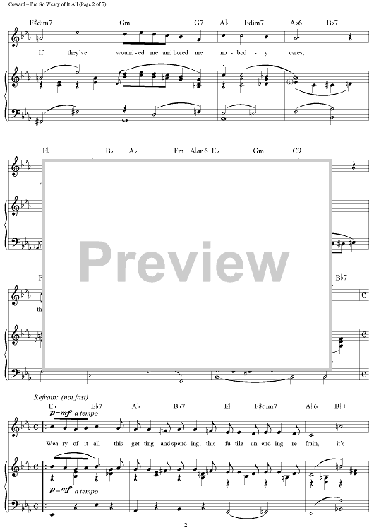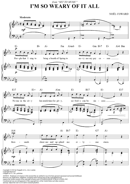 Digital Sheet Music for I'm So Weary of It All by Noel Coward scored for Piano/Vocal/Chords; id:357022
