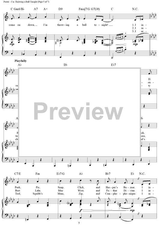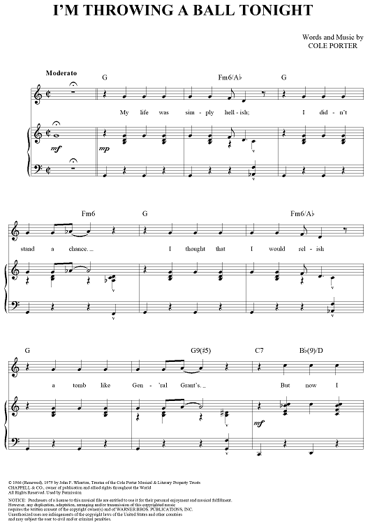 Digital Sheet Music for I'm Throwing a Ball Tonight by Cole Porter scored for Piano/Vocal/Chords; id:321000