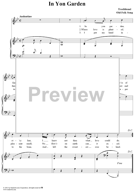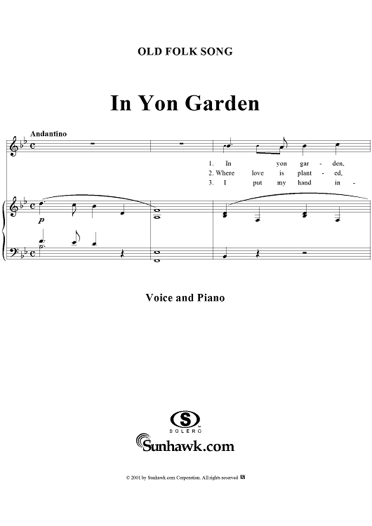 Digital Sheet Music for In Yon Garden by Traditional scored for Piano/Vocal; id:258645