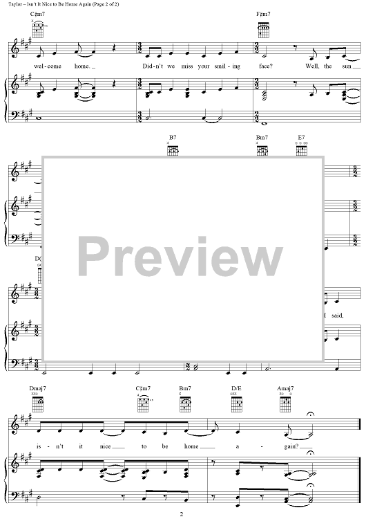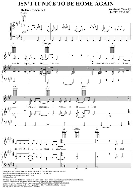 Digital Sheet Music for Isn't It Nice to Be Home Again by James Taylor scored for Piano/Vocal/Chords; id:318655