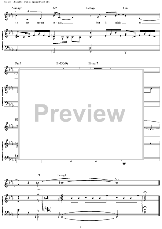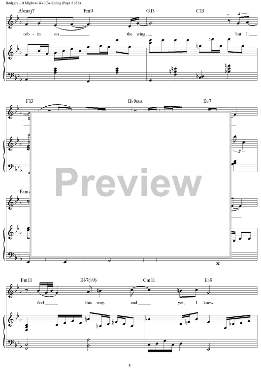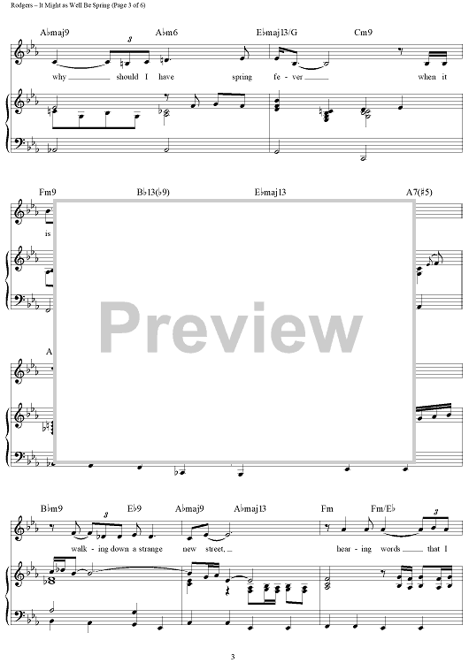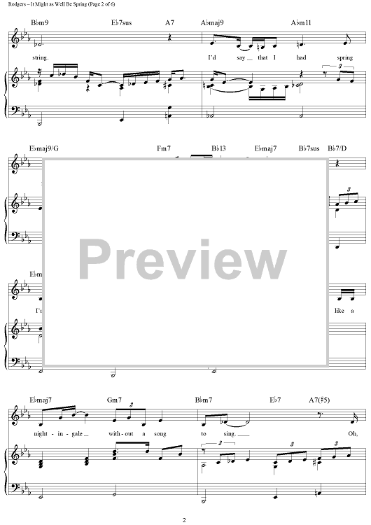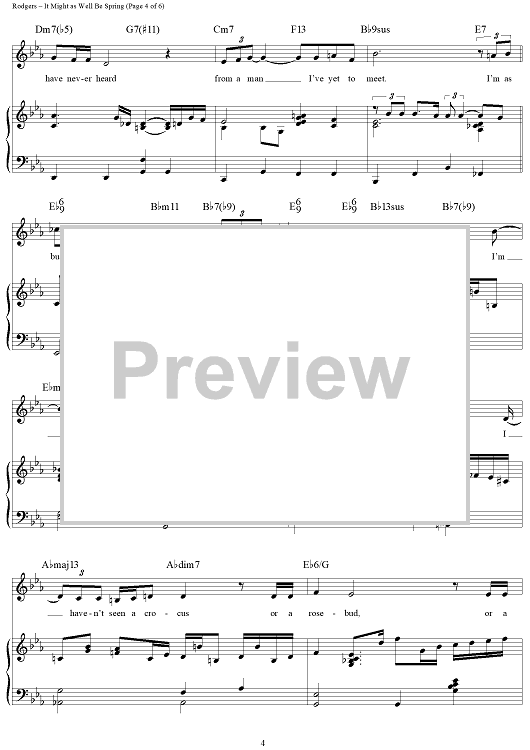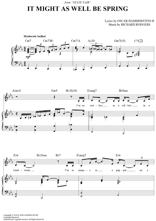 Digital Sheet Music for It Might as Well Be Spring by Richard Rodgers, Sarah Vaughan, Oscar Hammerstein II, Dick Haymes, Bernadette Peters scored for Piano/Vocal/Chords; id:402952