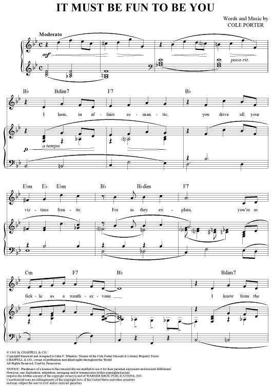 Digital Sheet Music for It Must Be Fun to Be You by Cole Porter scored for Piano/Vocal/Chords; id:321006