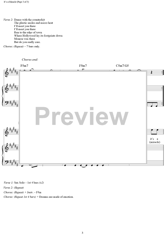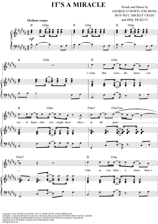 Digital Sheet Music for It's a Miracle by Boy George, Jon Moss, Roy Hay, Mikey Craig, Phil Pickett, Culture Club scored for Piano/Vocal/Chords; id:321255
