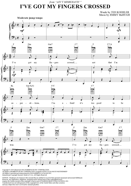 "I've Got My Fingers Crossed" Sheet Music by Jimmy McHugh