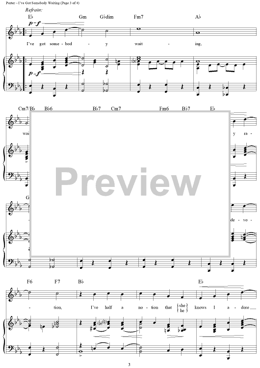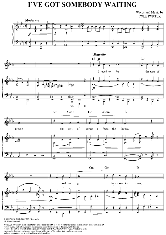 Digital Sheet Music for I've Got Somebody Waiting by Cole Porter scored for Piano/Vocal/Chords; id:321004