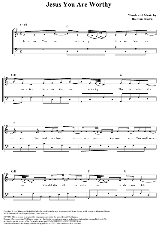 Digital Sheet Music for Jesus You Are Worthy by Brenton Brown scored for Piano/Vocal/Chords; id:321031