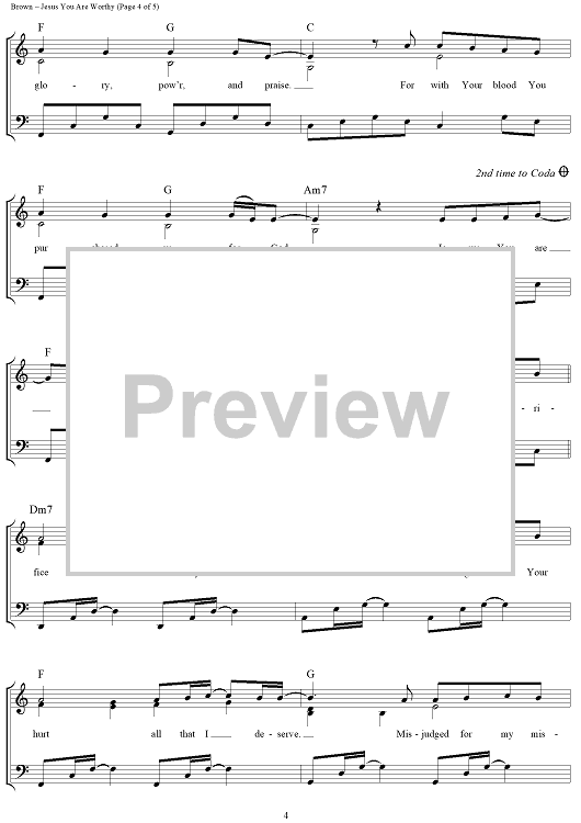 "Jesus You Are Worthy" Sheet Music by Brenton Brown