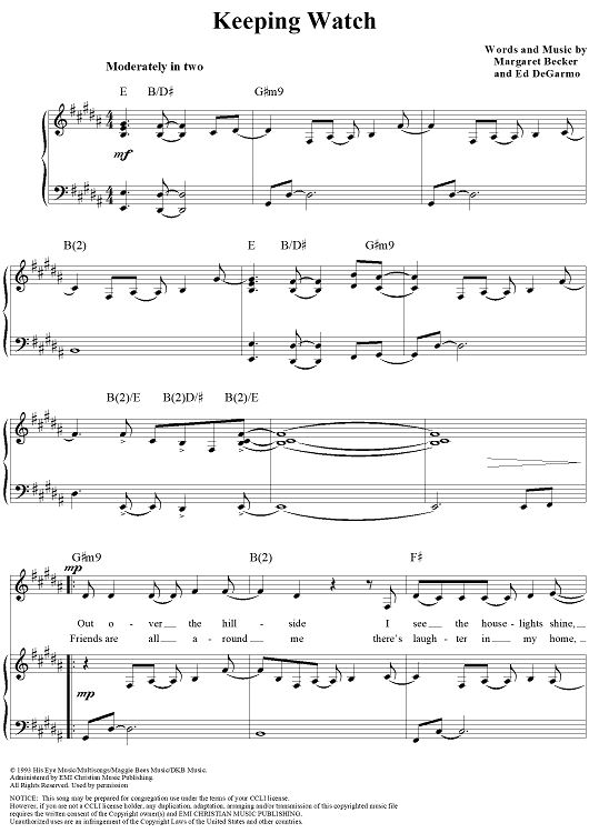 Digital Sheet Music for Keeping Watch by Margaret Becker, Eddie DeGarmo scored for Piano/Vocal/Chords; id:115743