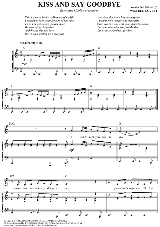 Digital Sheet Music for Kiss and Say Goodbye by Winfred Lovett, The Manhattans scored for Piano/Vocal/Chords; id:365374