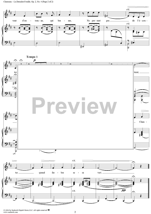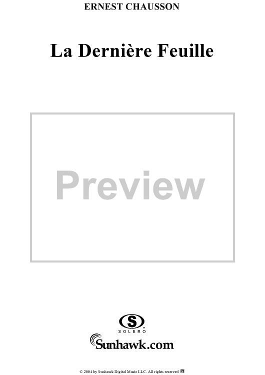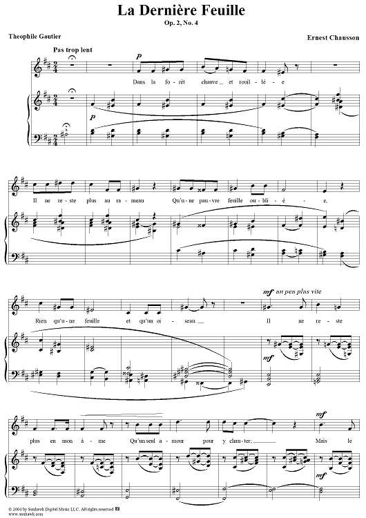 Digital Sheet Music for La Dernière Feuille, Op. 2, No. 4 by Théophile Gautier, Ernest Chausson scored for Voice/Piano; id:303389
