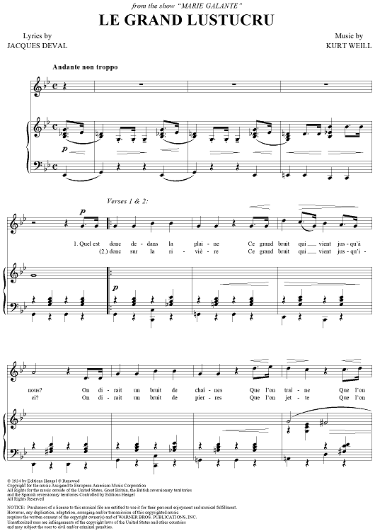 Digital Sheet Music for Le Grand Lustucru by Jacques Deval, Kurt Weill scored for Piano/Vocal; id:263462