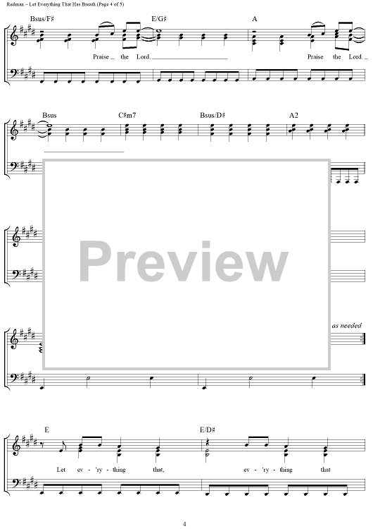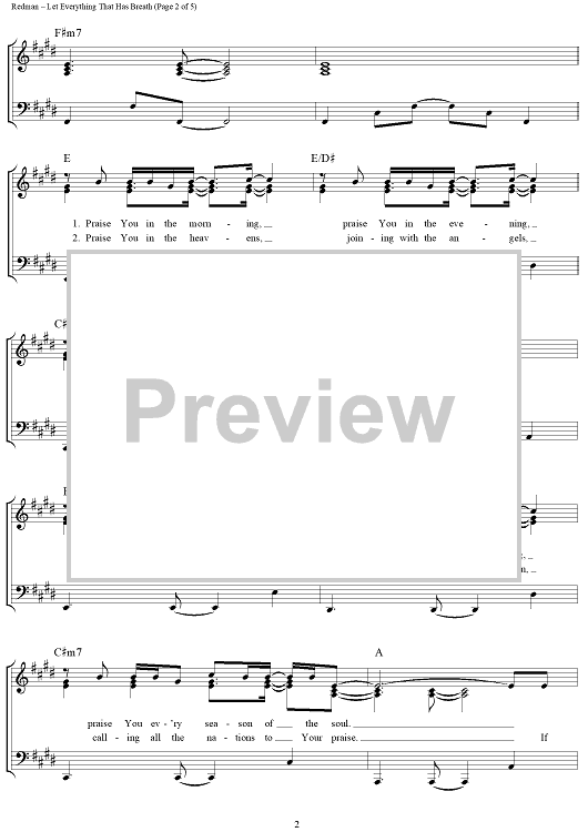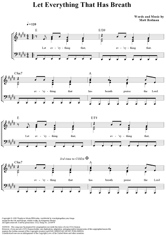 Digital Sheet Music for Let Everything That Has Breath by Matt Redman scored for Piano/Vocal/Chords; id:361643