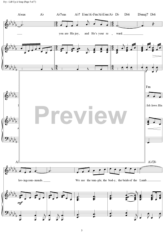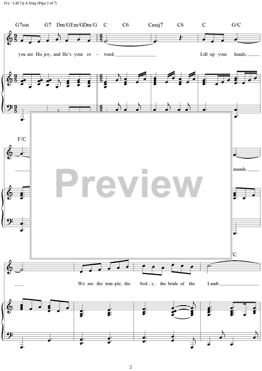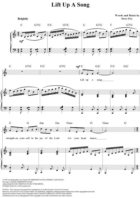Digital Sheet Music for Lift Up a Song by Steve Fry scored for Piano/Vocal/Chords; id:119480