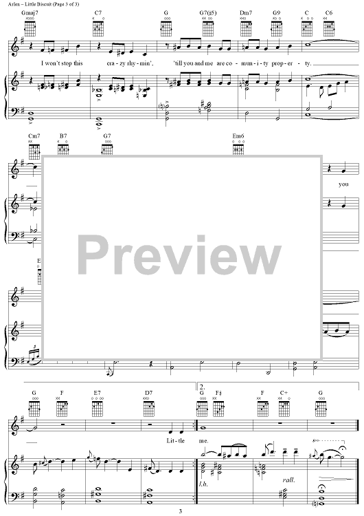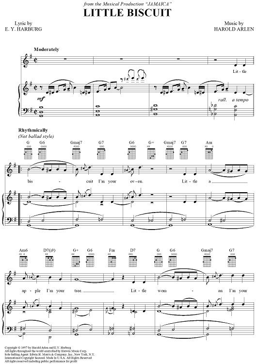 Digital Sheet Music for Little Biscuit by Harold Arlen, E.Y. "Yip" Harburg scored for Piano/Vocal/Chords; id:366039